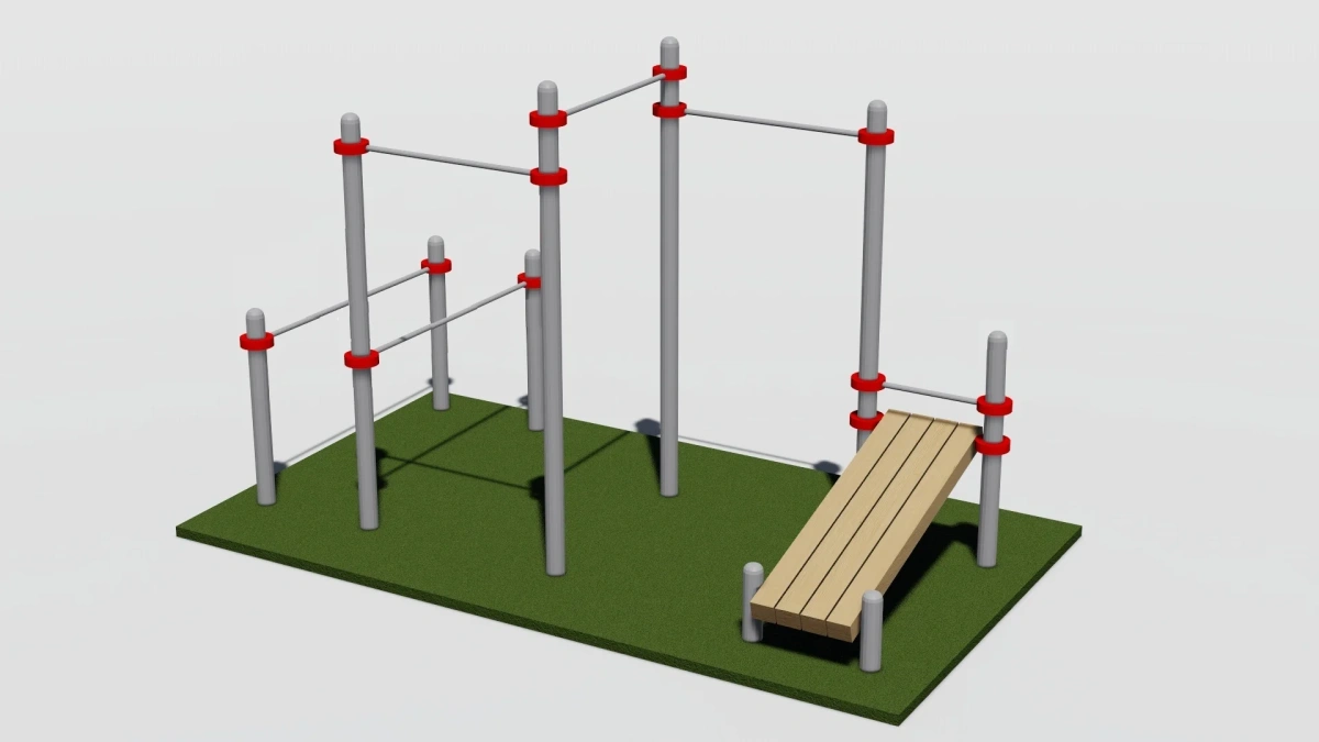 Три турника, брусья и скамья для пресса